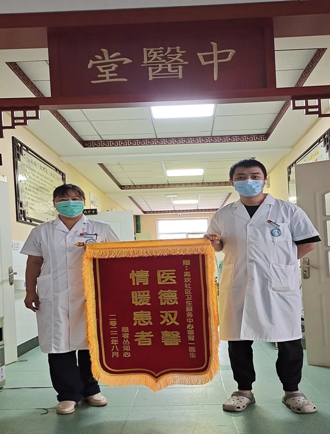 “感谢中医科的医生这么快就治好了我的病,没想到在家门口就能享受到这么便利和高超的中医诊疗......”高坎社区卫生服务中心日前收到患者送来的两面锦旗,这两面锦旗分别送给中医科琚冠一医师和肇洋医师。患者由衷感谢两名医师在短期内,快速有效地为他们解除病痛。