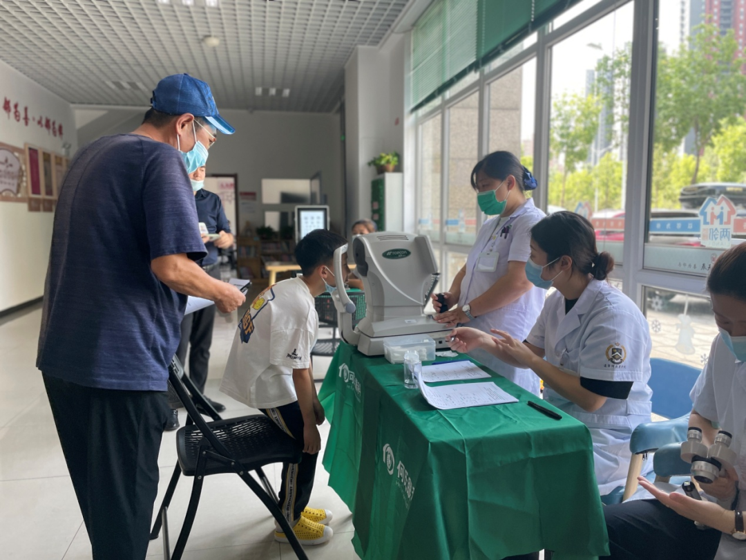 8月18日,五三街道奉天九里社区联合何氏眼科医院举行居民眼科健康检查活动。检查的项目包括:检查视力、眼底镜检查、建立眼科档案等。