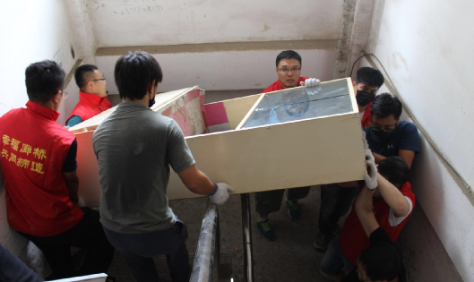 到了目的地,明确现场分工和任务后,大家戴上手套,有条不紊地迅速行动起来,快速往返在各楼道当中。有的搬运旧木板、废旧自行车、纸箱等堆放物品,有的清理楼道卫生,有的装车,大家个个干劲十足。对于那些无人认领的物品,志愿者逐一敲门询问,在征得户主的同意后,对其进行清理打扫。历时3个小时,共清理13个单元内的乱堆放杂物100余处,清运垃圾7车。
