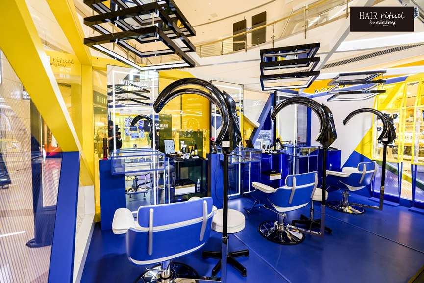 法国希思黎睿秀护发快闪店融合了欧式高端发廊的经典风格和当代时髦前卫的设计理念,以品牌标志性的蓝、黄、黑、白为主色调,用极简的线条和现代主义的几何图案拼接落地玻璃,打造出经典又新潮的睿秀发廊。彰显出法国希思黎睿秀护发品牌的底蕴——先锋科技与艺术体验的完美融合。这座窗明几净的睿秀发廊散发着跨越时代的美感,充满个性的时髦气息扑面而来,引人不禁驻足探索。